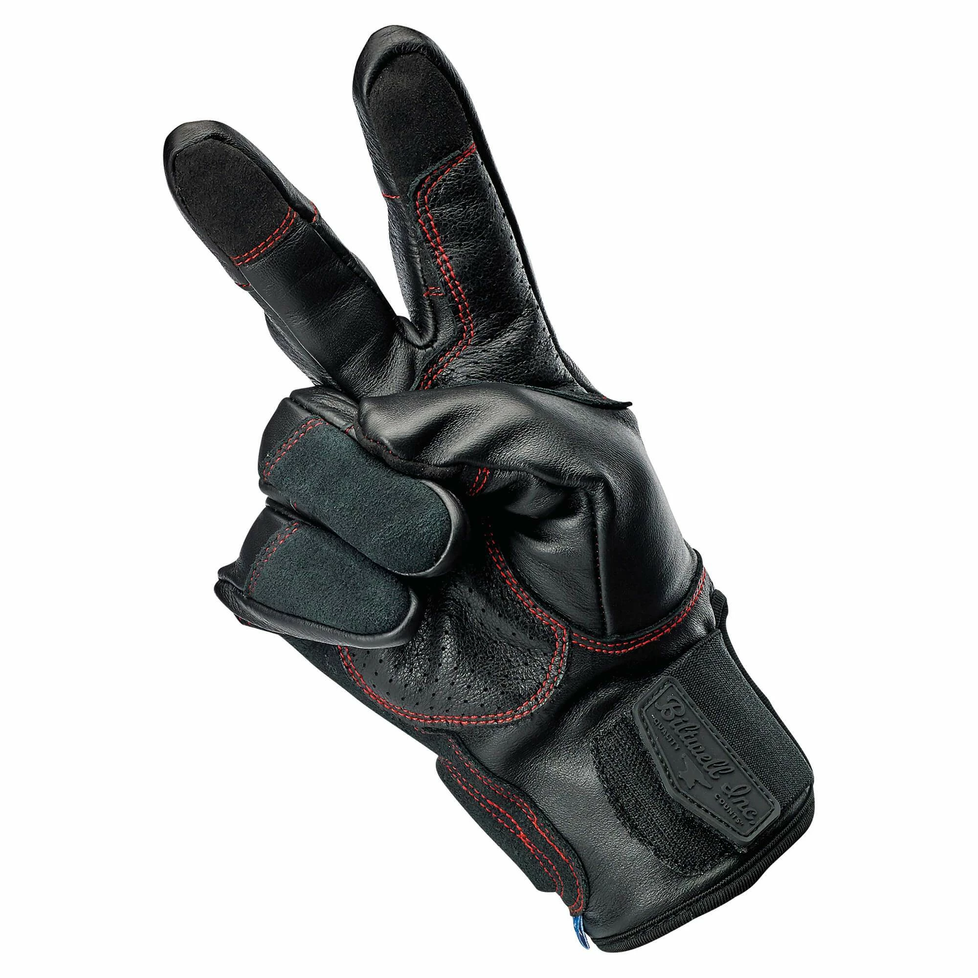 - Wide elastic Velcro wrist closure with thermoplastic rubber Biltwell pull tab
