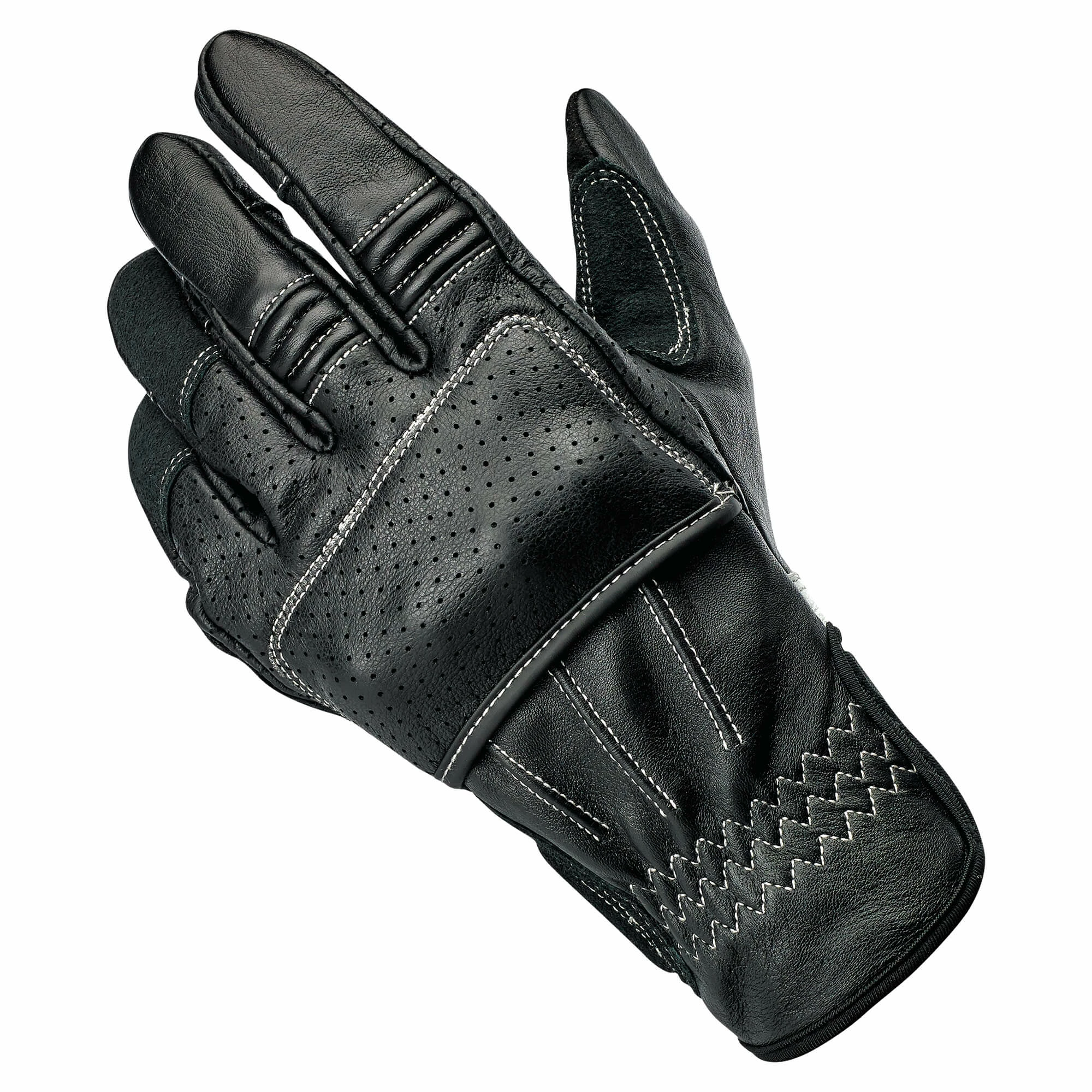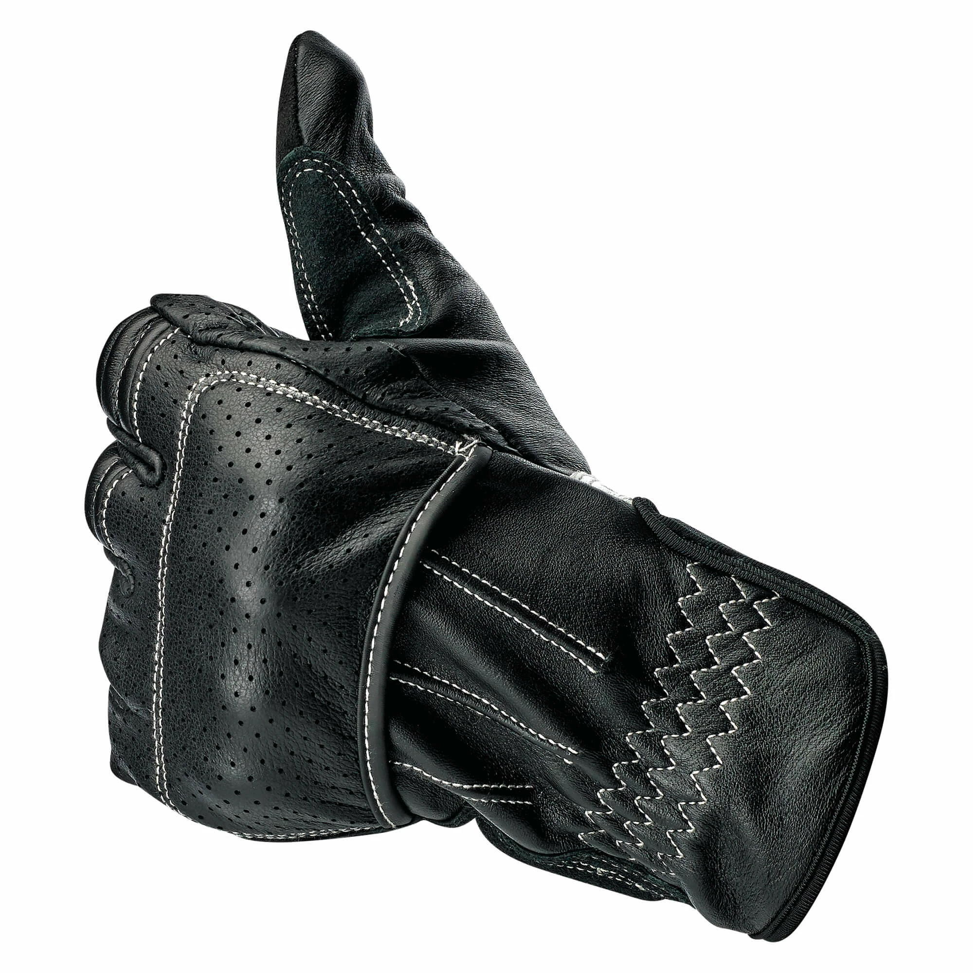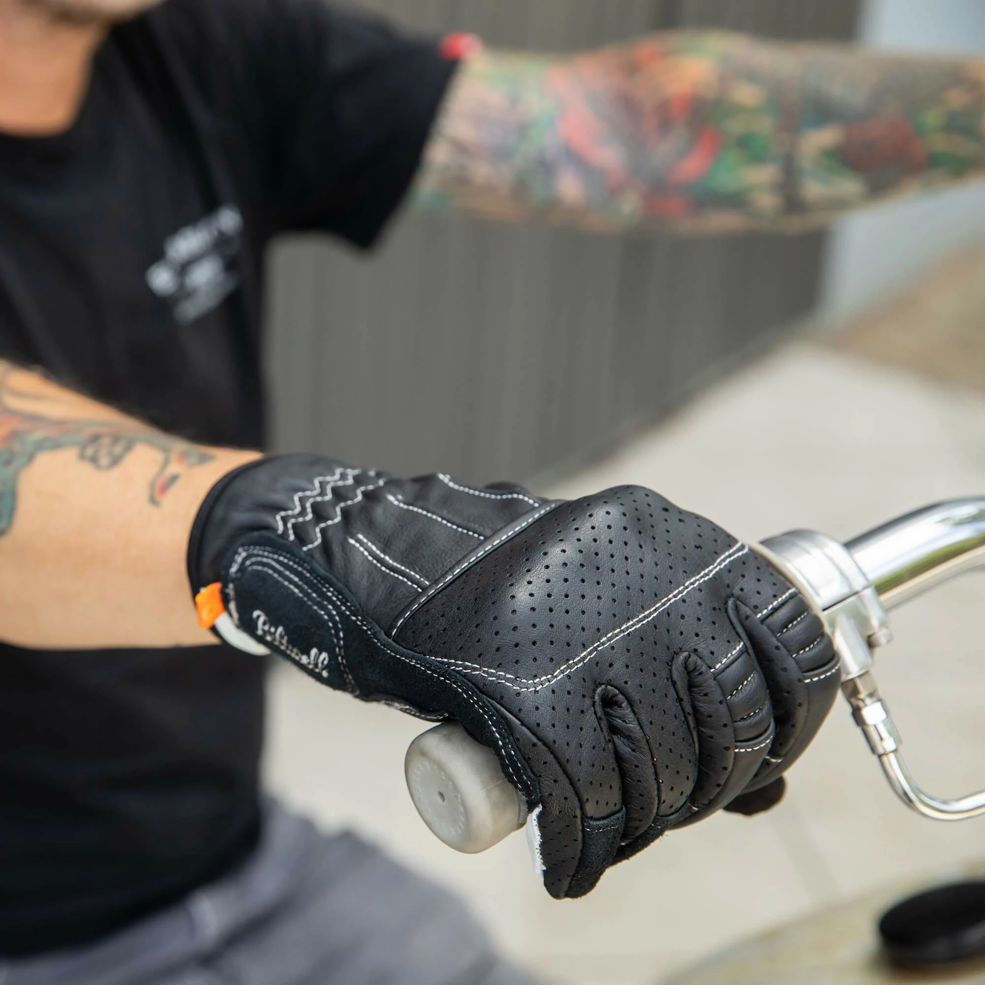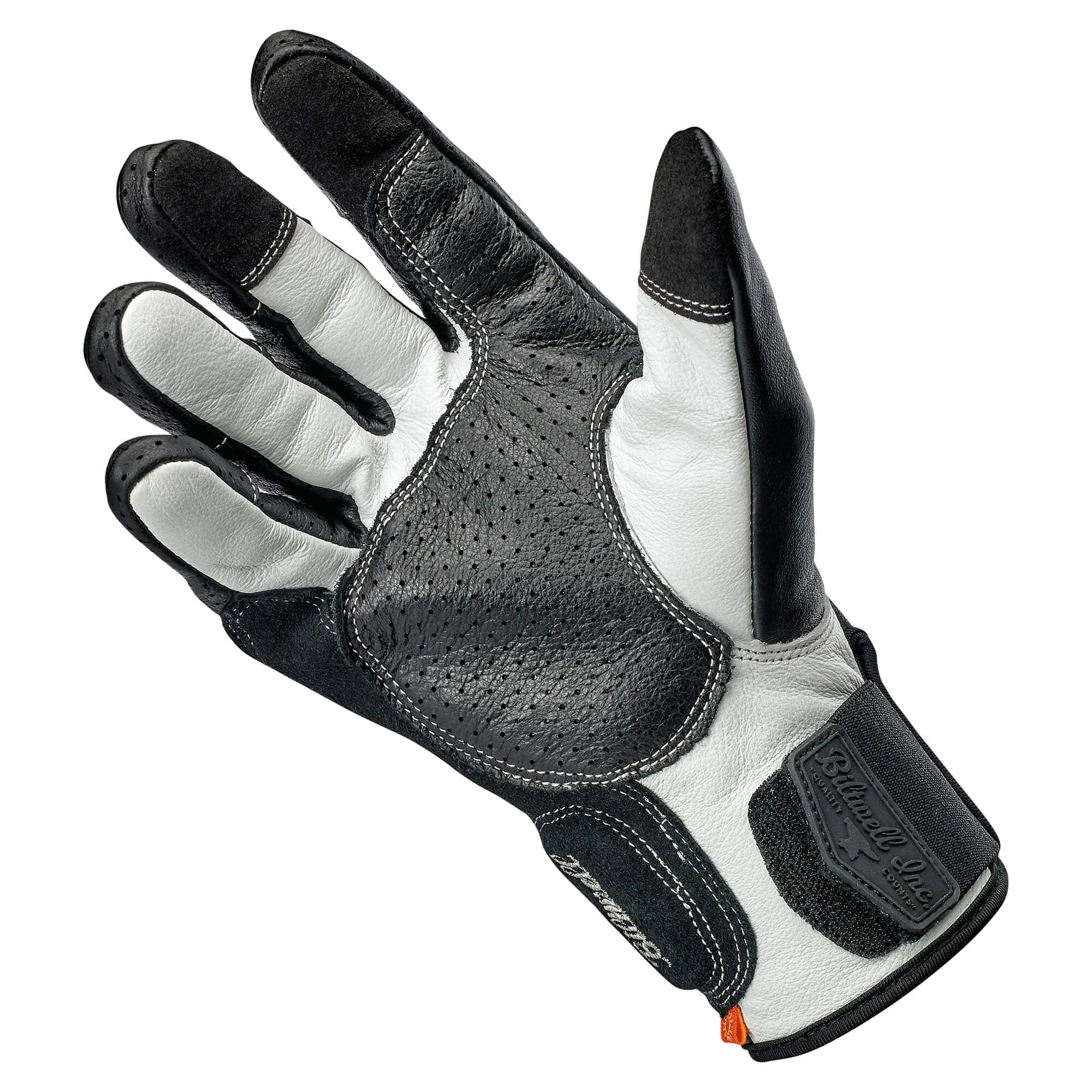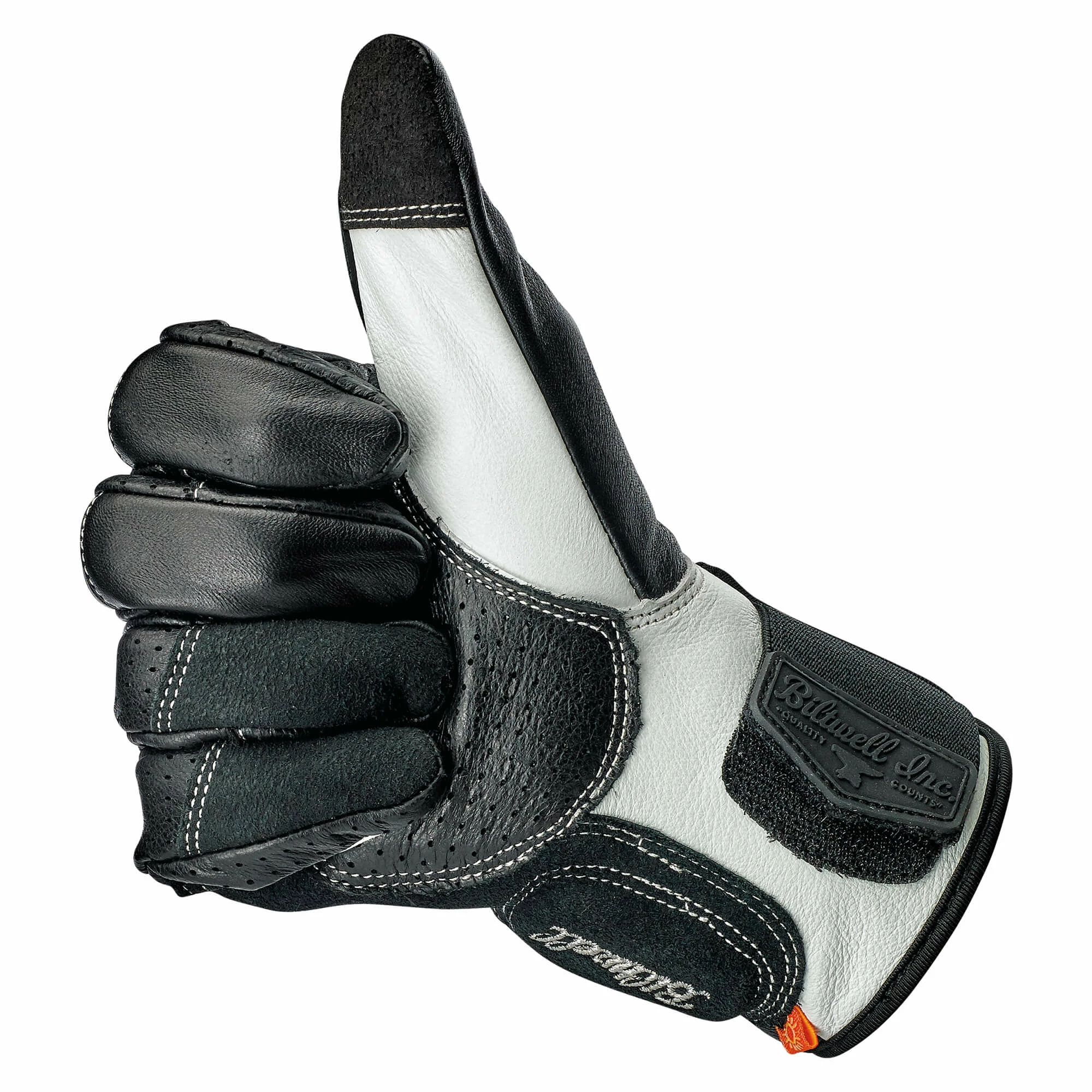- Wide elastic Velcro wrist closure with thermoplastic rubber Biltwell pull tab
