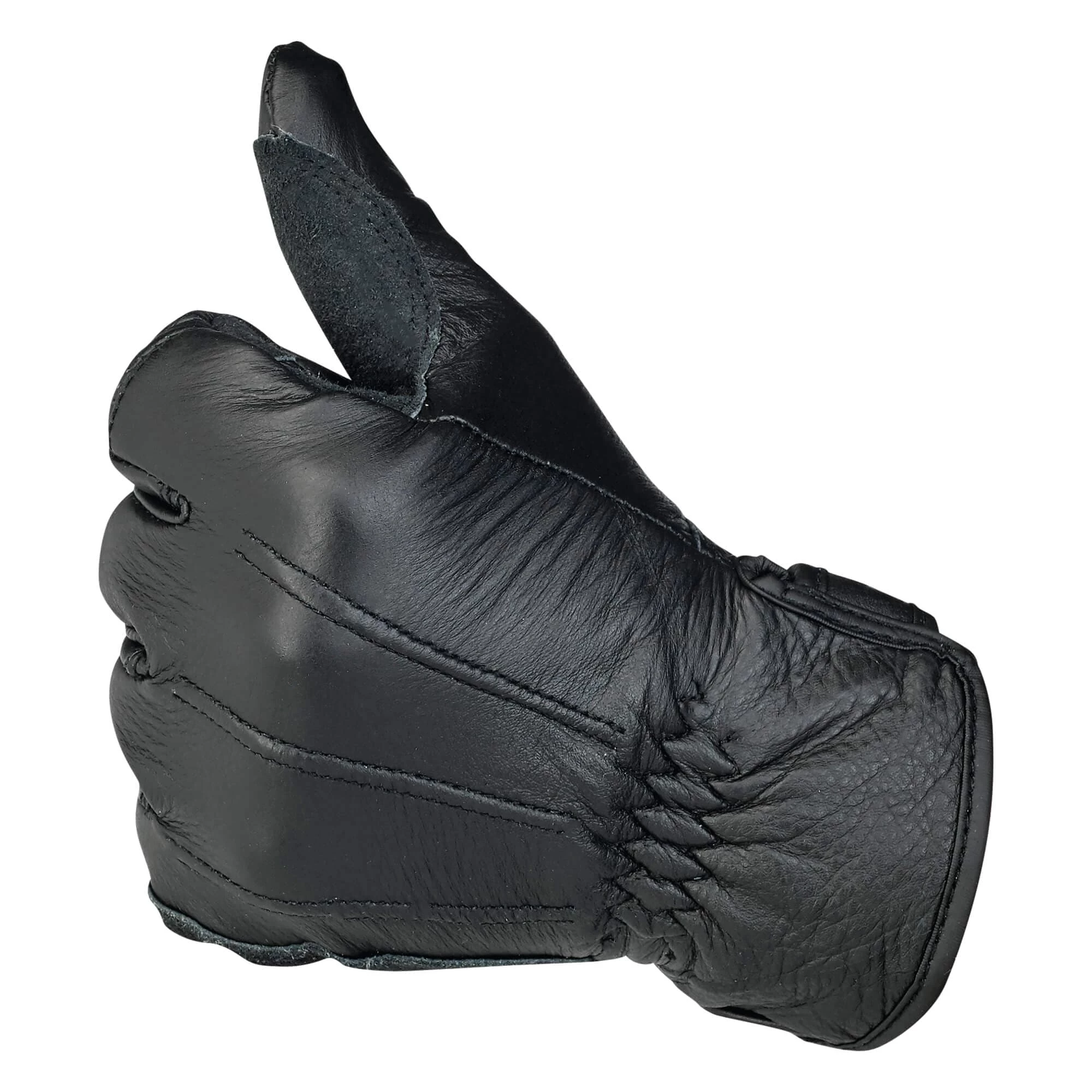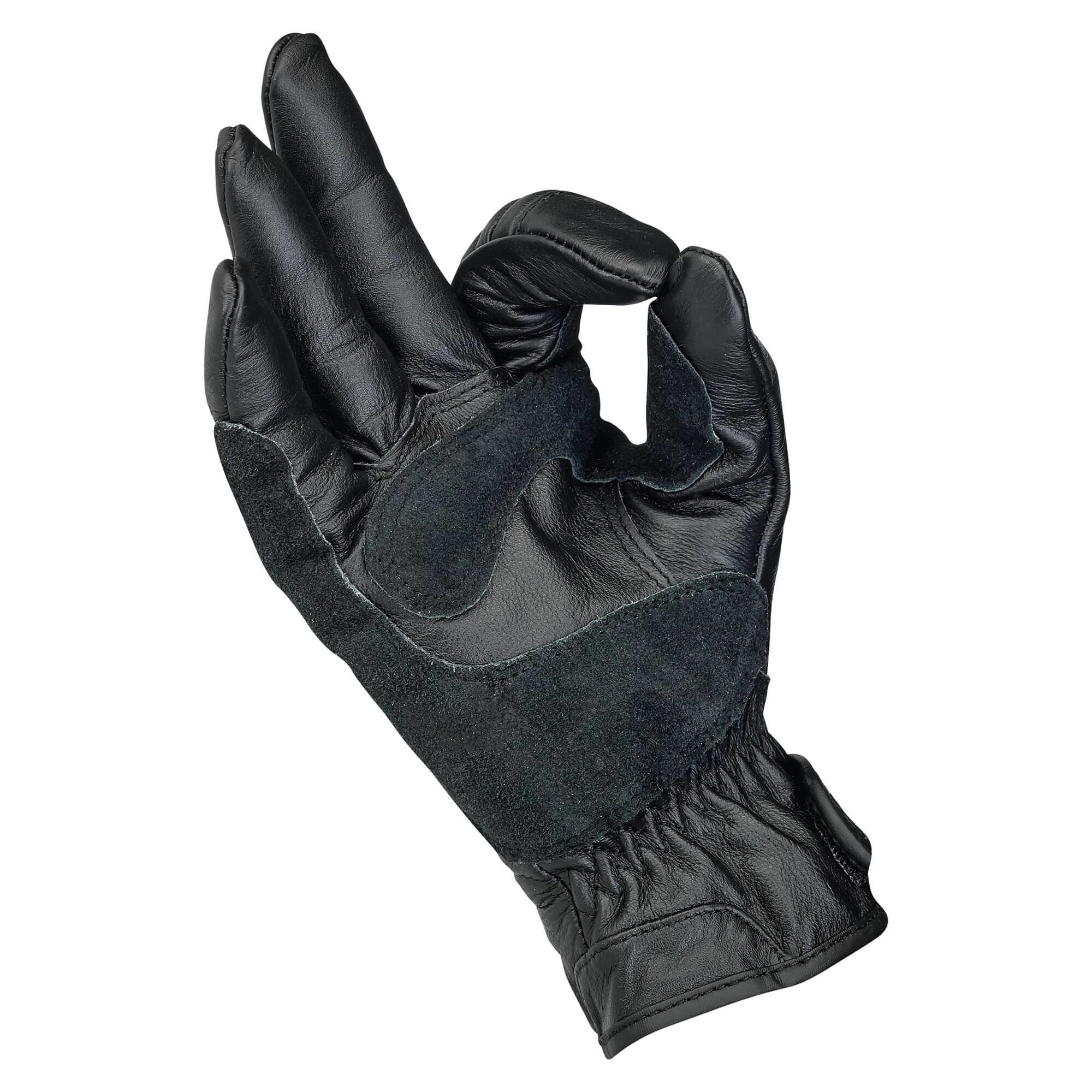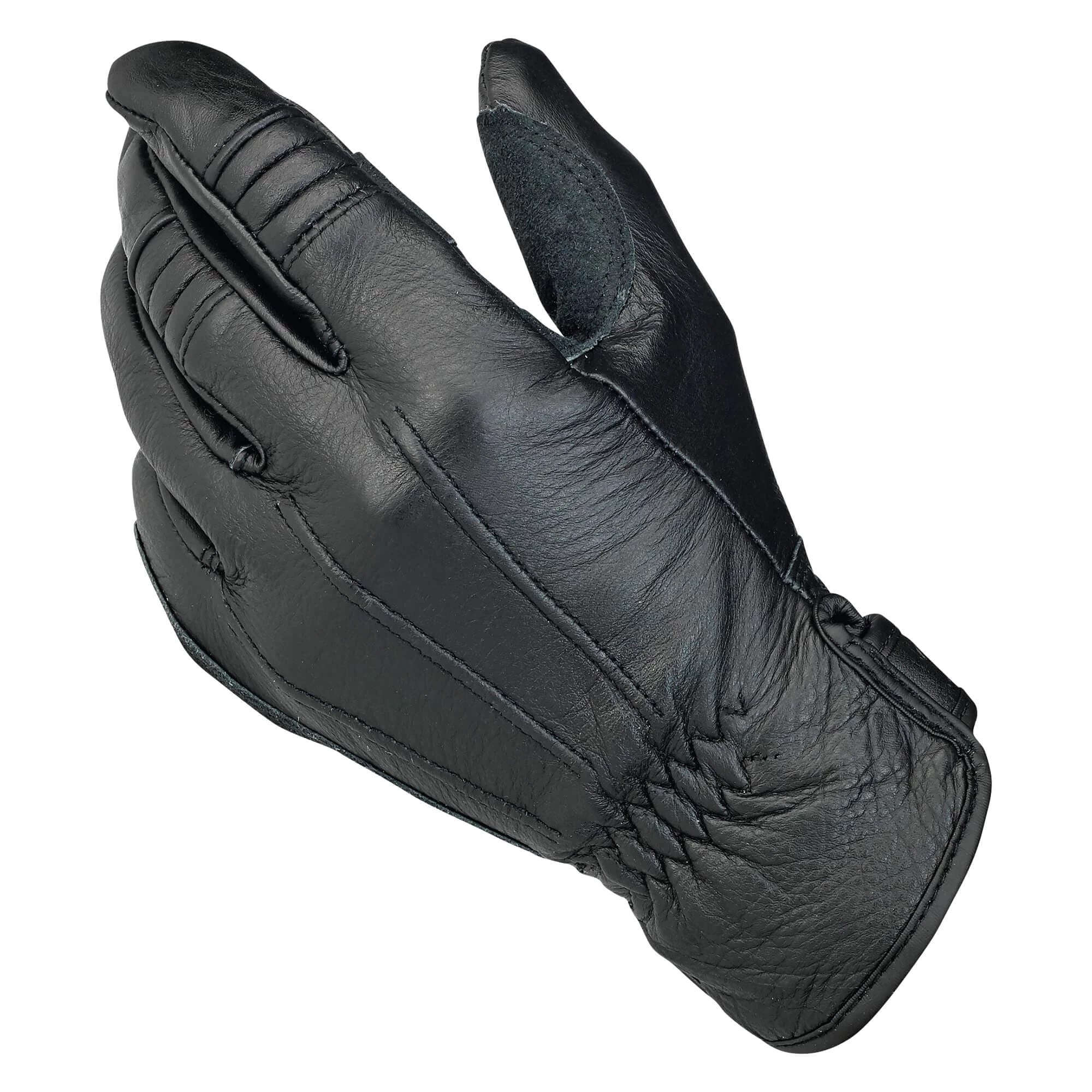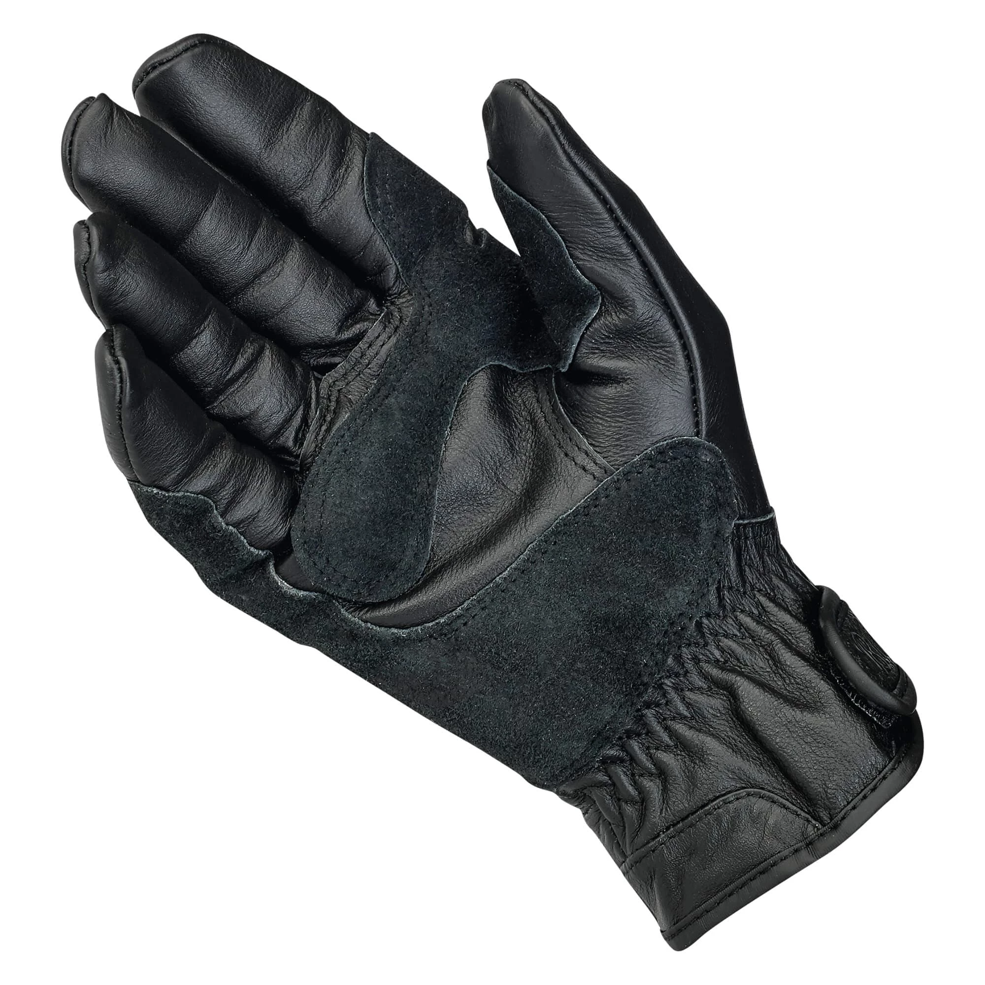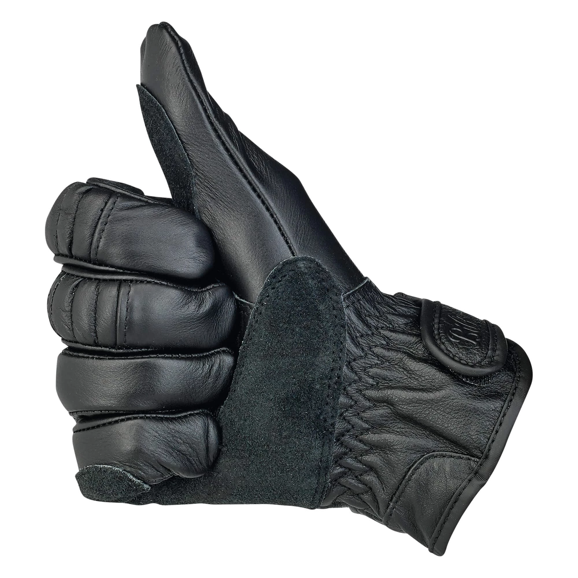 A rugged and versatile glove for bikeriders who like function, not filigree. Classically styled 100% leather construction with fleece half liner for comfort. Built for three-season riding: spring, summer and fall. Biltwell’s work Glove features articulating index and middle fingers for added flexibility. The double-thick leather palms have light padding in anatomical pressure points for increased abrasion resistance and shock isolation. The open cuff has elastic gathers and an adjustable embossed leather tab for easy installation and a great fit.