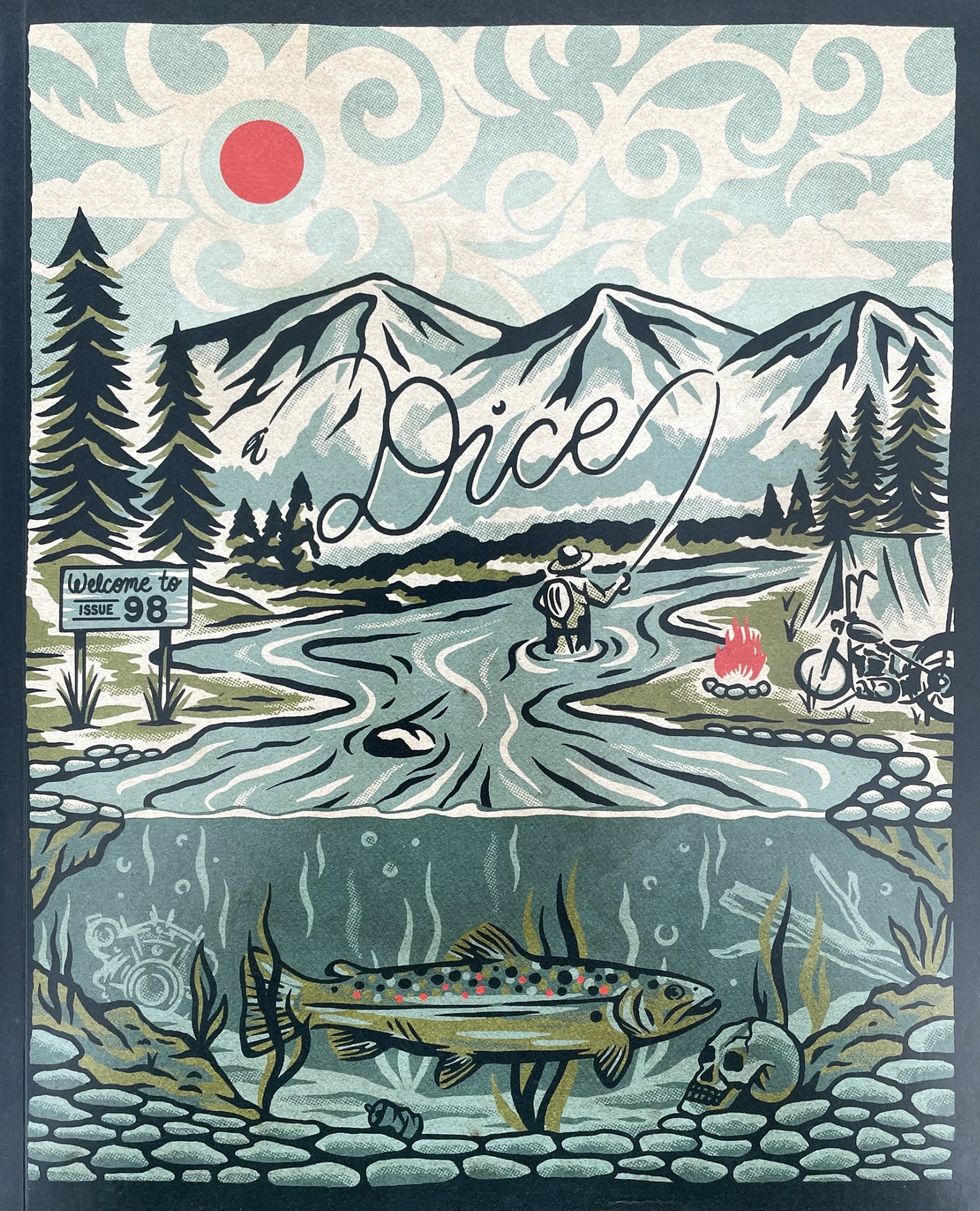 The beautiful design and layout for this issue was expertly handled by our guest art director for this issue, Daniel Sheridan! We’ve been collaborating with Dan for many years and his incredible artwork and design skills have graced the pages of previous issues of magazine and grace lots of our merchandise. Needless to say, we’re stoked to team up with Connecticut’s finest yet again and bring you the mighty….DicE ISSUE 98!!!
