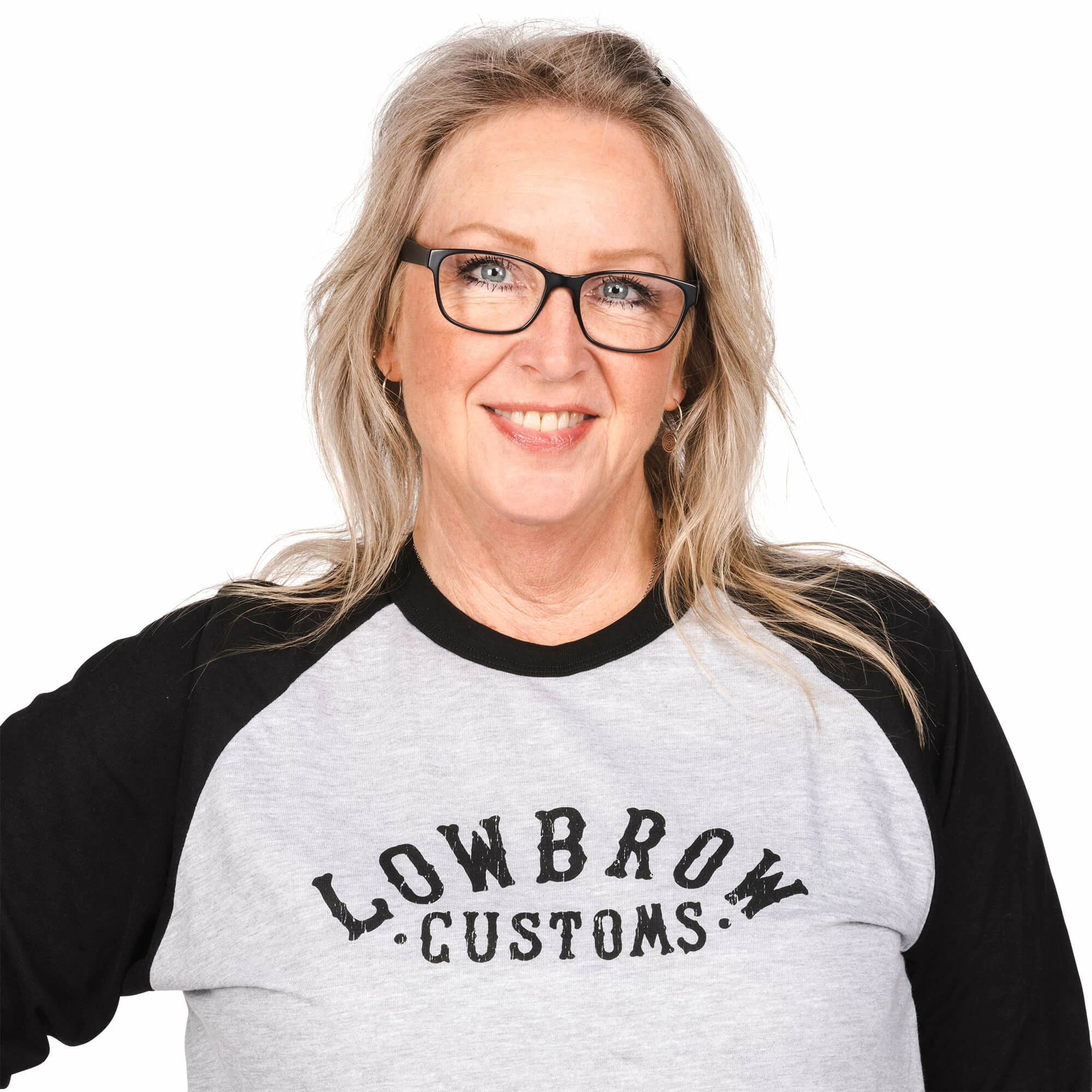 The Arched Logo Raglan T-Shirt is a 100% pre-shrunk grey and black cotton raglan. Features a full front imprint of the arched Lowbrow Customs logo.