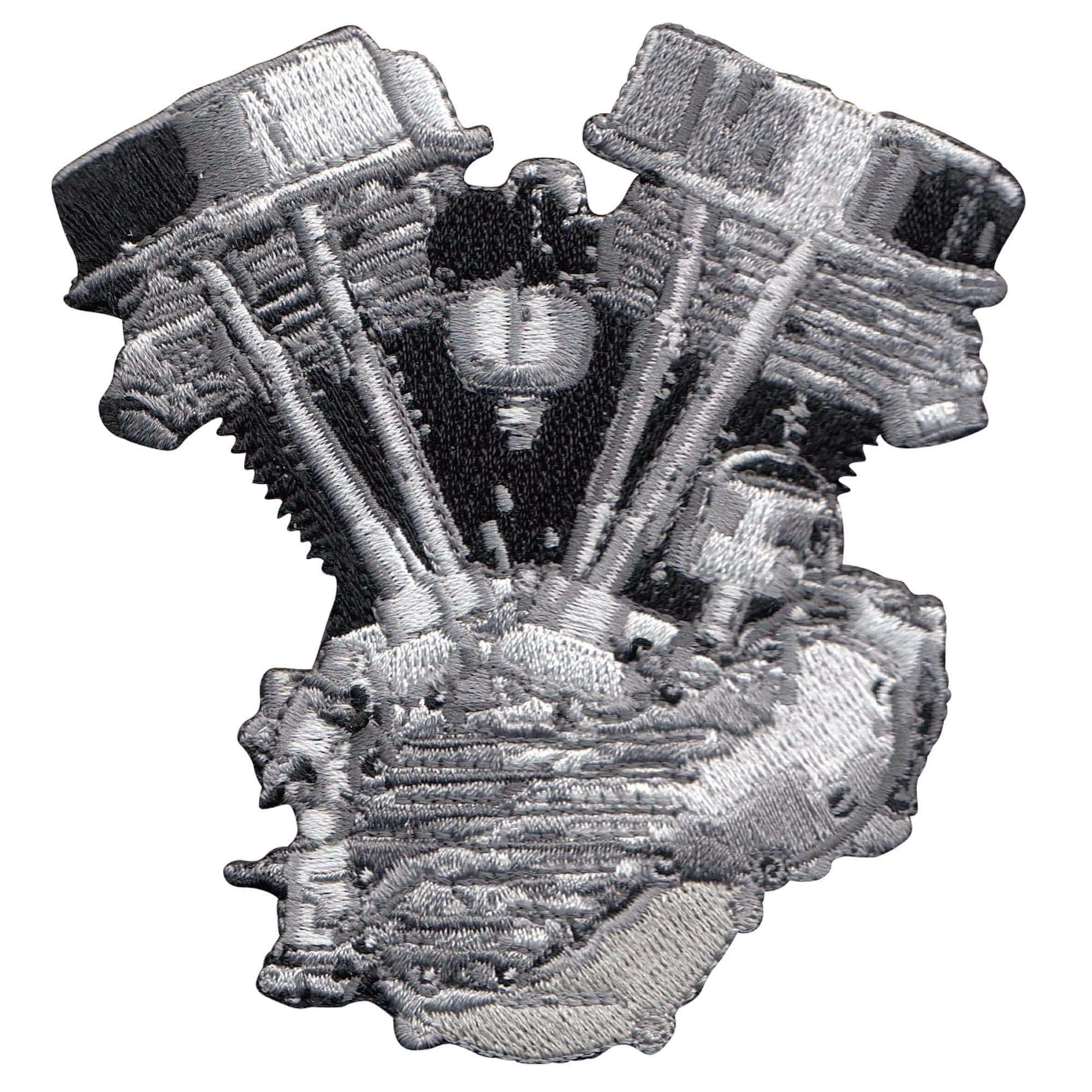 A very detailed embroidered patch of a Harley Davidson Panhead motor. Approximately 4″ tall x 3.5″ wide. With heat-seal backing so you can sew or iron this patch on.