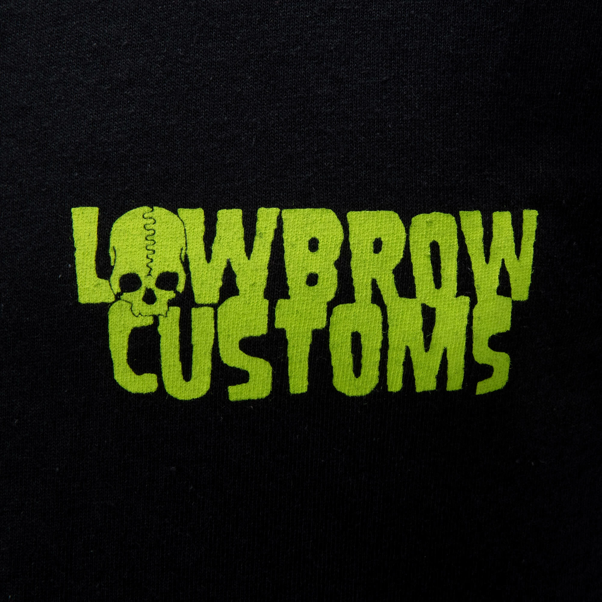 Help support Lowbrow Customs by spreading the word and becoming a Lowbrow Weirdo! The Lowbrow Weirdo t-shirt is discharge and water based ink printed for a great vintage look and feel. Printed on a black, heavy 100% cotton t-shirt.