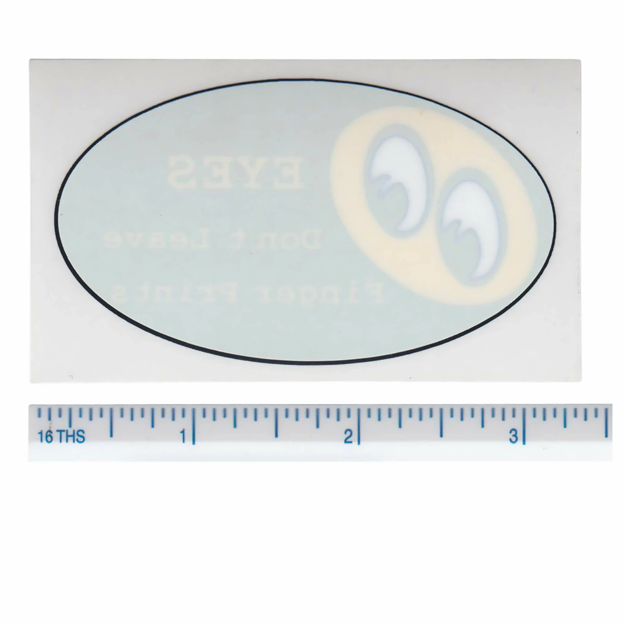 EYES Don’t Leave Fingerprints Sticker. Color printed on a clear background, for inside application to be viewed from outside. Measures approximately: 3″H x 1-3/4″W.