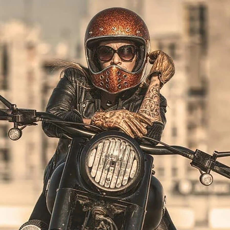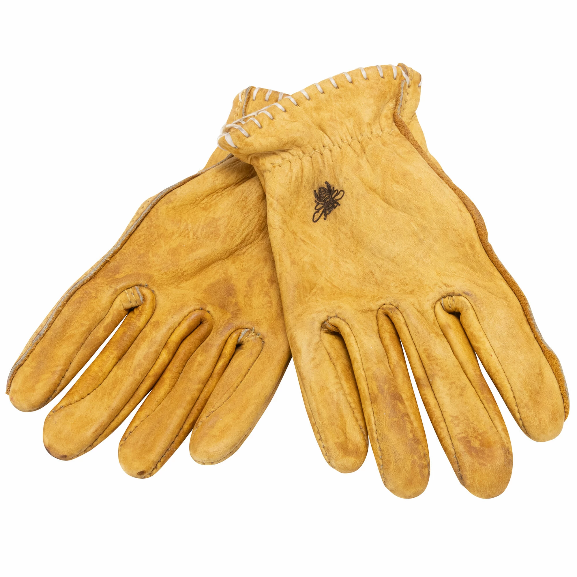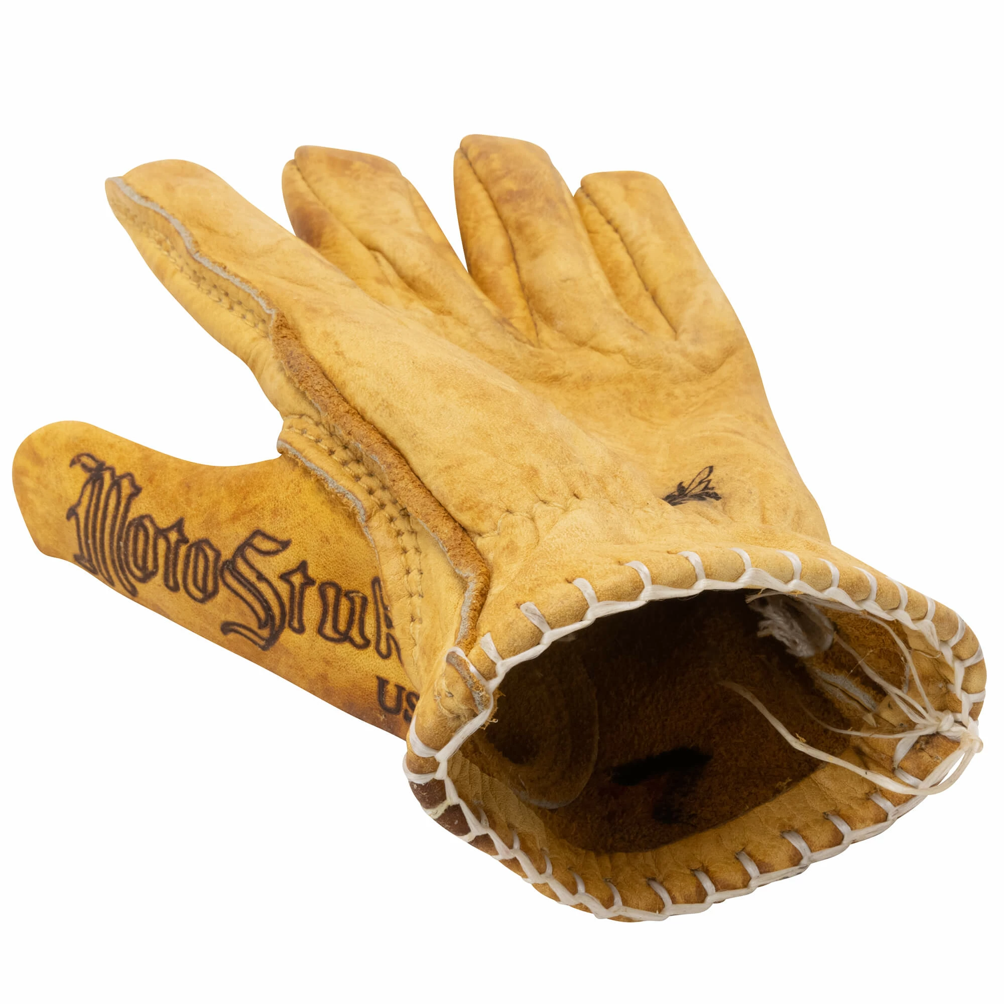 To serve the rapidly growing women’s bike scene, MotoStuka offers HoneyBee Shanks. These are the same high quality, American made gloves as their original Shanks but cut slimmer to fit a woman’s hand. “Shanked” and finished out with waxed thread, they’re conditioned with a balm made of locally sourced natural materials. This finishing process waterproofs the leather and gives it a distressed rich copper finish.