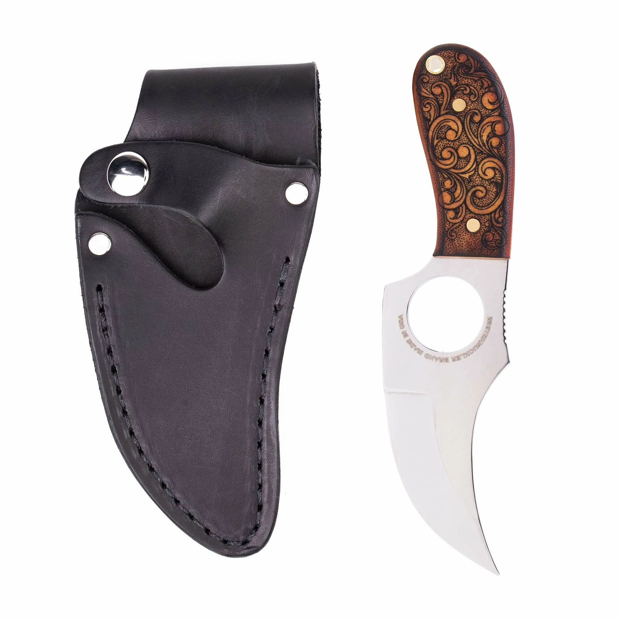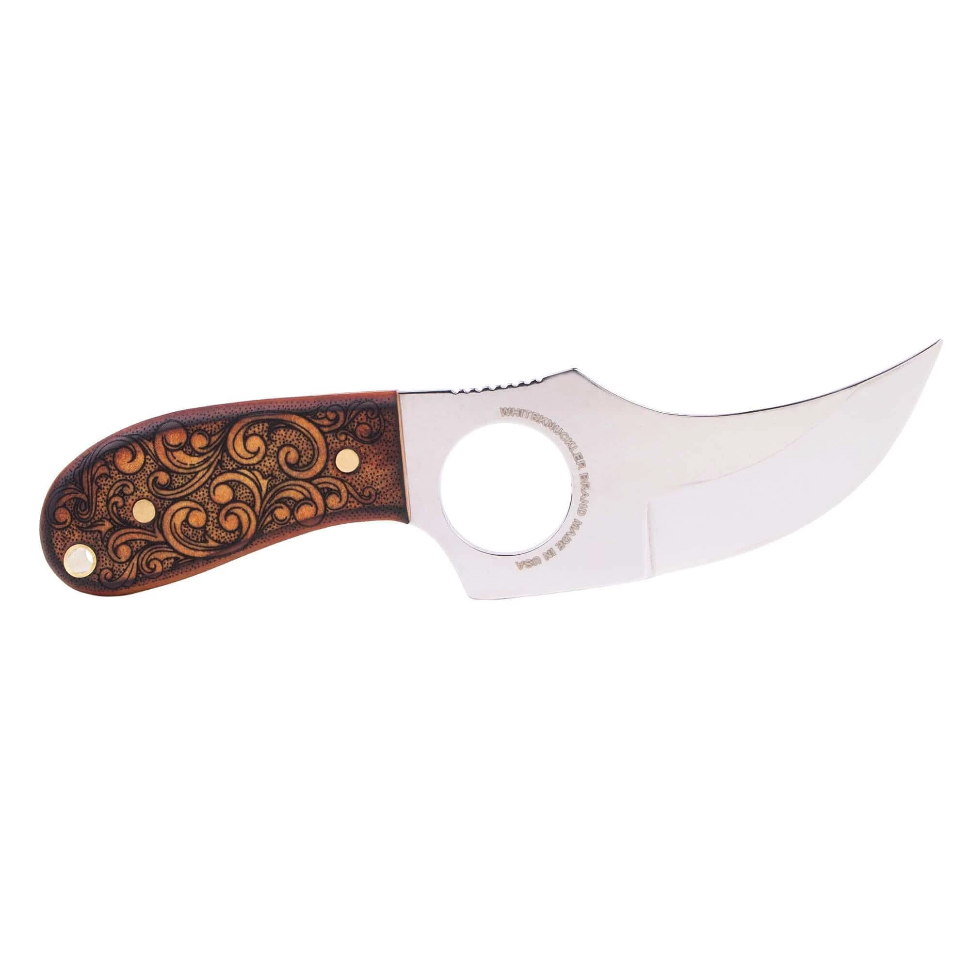 This model represents a turning point for the brand and Whiteknuckler truly feels it’s the cumulation of over a decade of development. The classic scrollwork pattern offered in Natural or Jet Black Leatherwood, speaks to a classic and timeless American design, that evokes all that we care about in design and attention to detail. These models get special attention in our shop.